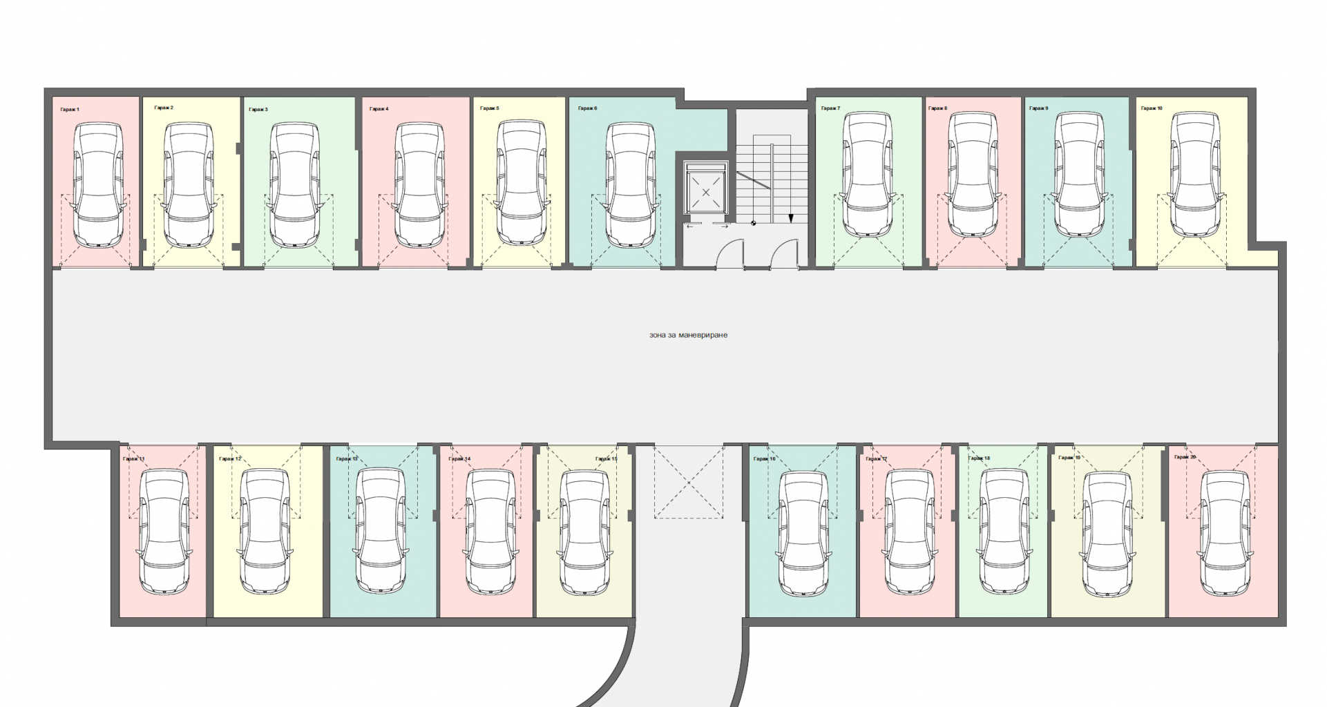 | Гараж № 20 | -1 | Единичен | 25.67 | Свободен |